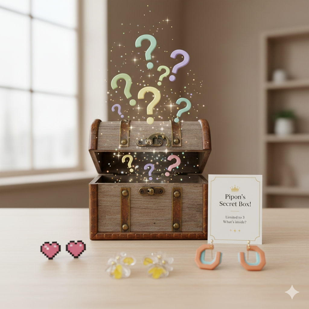 Thank you for all your support! I have a special surprise for you today. I’m creating a ‘Secret Box’ with 3 pairs of earrings, handpicked by me, Pipon, based on my latest inspiration.