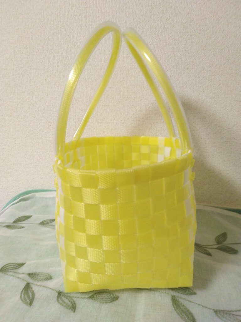 Hand-woven Plastic Basket (Yellow & White) Was Now $140 SaleThis colorful hand-woven plastic basket is a handmade item that adds a splash of color to your daily life. Its vibrant yellow and white checkerboard pattern will bring a bright accent to your coordination or living space.【Material】 Carefully crafted from PP (polypropylene) bands.【Care Instructions】 Cleaning is easy; simply wipe it gently with a damp cloth if it gets dirty.【Size】Height: Approx. 14cmWidth: Approx. 21cm (at the base)Depth (Gusset): Approx. 14cmHandle Drop (or Handle Height): Approx. 15cm (fixed)*As each item is handmade, slight variations in size may occur.【Recommended Uses】Perfect as a lunch bag for your bento box and water bottle.Great for quick shopping trips or walks.It also blends well into your interior decor as a small storage basket in your living room or entryway for small items.【Please Note】 Each basket is carefully hand-woven. Please handle with care as applying excessive force or putting heavy items into it may cause damage. We invite you to enjoy the warmth and unique charm that only handmade items possess. Quantity Enter an amount $ Add to Cart Add to Cart You may also like Previous Next Sale Heart & Flower Trio Set $100 Sale Dreamy Party Set $100 Sale 8-Bit Love Trio $100